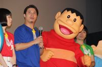 声優の水田わさび、大原めぐみ、かかずゆみ、木村昴、関智一、井上麻里奈、能登麻美子、大杉宜弘監督、ゲスト声優の爆笑問題・田中裕二が登壇。田中は「ドラえもんとのび太に挟まれるなんて夢のよう。意外とのび太がでかいのにびびってます」と笑いながら語った。