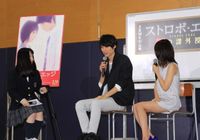 咲坂伊緒の同名少女コミックを映画化した『ストロボ・エッジ』(3月14日公開)に出演する福士蒼汰、有村架純が3月10日、東京・品川エトワール女子高等学校で行われたイベントにサプライズで登場。ふたりが笑顔で会場に現れると、総勢250人の女子生徒たちから大歓声が沸き起こった。