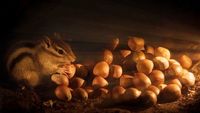 シマリスは冬眠するために約100個のドングリを収集しなければならず、口の中には常にドングリでパンパン。詰め込み過ぎて、口から少しドングリがはみ出ているところも超キュート!