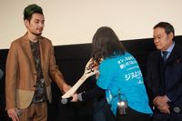 しゃもじと交換した鑑賞券を受け取る二階堂ふみ