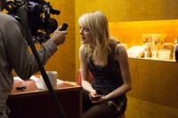 エマ・ストーン、突風でスカートがめくれ上がる!