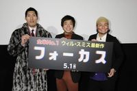 ウィル・スミス演じる超一流の天才詐欺師が、究極のだまし合いを展開するサスペンス映画『フォーカス』(5月1日公開)。4月28日、本作の公開直前イベントが開催され、“ダンソン”で話題のお笑いコンビ・バンビーノとサプライズゲストの柔道家・篠原信一が登場した。