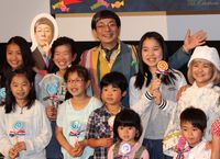 映画『王妃の館』(公開中)のこどもの日プレミアム舞台挨拶が5月5日に新宿バルト9で開催され、水谷豊、山田瑛瑠、橋本一監督が登壇。水谷は劇中衣装である、おかっぱ頭にハーフパンツ、カラータイツという奇抜な出で立ちで登場し、観客を驚かせた。