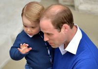 ピープル誌が独占で入手した情報によれば、「全身をネイビーカラーで決め、ウィリアム王子に抱かれたジョージ王子の、父親とは反対の右側と左側が3対7の横分けヘアスタイルは完璧だった」