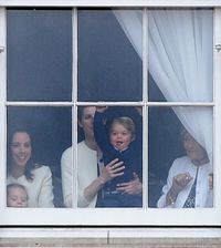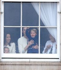 4月に89歳の誕生日を迎えたエリザベス女王を祝うため6月13日に行われた祝賀パレードで、ジョージ王子が初のバッキンガム宮殿のバルコニー・デビューを果たした。