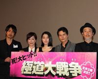 第68回カンヌ国際映画祭で注目を集め、世界21ヶ国での公開も決定した、鬼才・三池崇史監督の“極道エンターテインメント”映画『極道大戦争』。本作の初日舞台挨拶が、6月20日(土)、TOHOシネマズ 新宿にて開催され、主演の市原隼人をはじめ、成海璃子、リリー・フランキー、高島礼子、青柳翔(劇団EXILE)、でんでん、坂口茉琴、KAERUくんby三元雅芸ら出演者が登壇した。