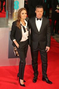 まず1組目のカップルはアンジェリーナ・ジョリーとブラッド・ピット。2014年の英国アカデミー賞授賞式にタキシードのペアルックで登場して話題をさらったこともあるが、2人は黒を中心としたシンプルなラインの服を着ていることが多い。