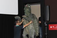 田原が園監督に「カメという発想は前からあったのですか?」と尋ねると、園監督は「はい。台本は25年前に書いて、夢の島から始まる映画でした。それがなくなっちゃったので、2013年に撮影し、2015年にオリンピックの建設が発表となるってことにしたら、公開がちょうど遅れて。今、大騒ぎの真っ只中です」と映画公開の絶妙なタイミングについて説明した。
