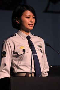 岡田は、「自分たちの自信作が完成ました。本当にチャレンジした企画です」と力強く宣言。『図書館戦争』の魅力をしっかりとプレゼンした後「緊張しました。役柄として立つのも初めてでしたし」と安堵の表情を見せた。後から登場した佐藤信介監督は「寸劇を観ているようで楽しかったです」といたずらっぽい笑みを浮かべた。