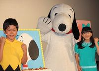 世界中で親しまれ、愛され続けている人気キャラクター“スヌーピー”の初のCG/3D映画『I LOVE スヌーピー THE PEANUTS MOVIE』が12月4日(金)より日本で公開される。その公開に先駆け、スヌーピーの誕生日として認定された8月10日(月)に、TOHOシネマズ 六本木ヒルズにてスヌーピー・バースデー・イベントが開催。本作でチャーリー・ブラウン役として声優に挑む鈴木福と“赤毛の女の子”役の声を担当する芦田愛菜、サリー役の小林星蘭、ルーシー役の谷花音が登壇した。