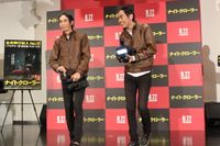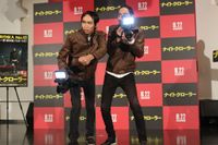 ジェイク・ギレンホールが、体重を12kg落として挑んだ衝撃作『ナイトクローラー』(8 月22日公開)の公開直前イベントが、8月17日に銀座のTHE BAGUS PLACEで開催。主人公が、不気味で気持ち悪いということで、“キモい芸人”と言われるアンガールズの田中卓志と山根良顕が、日本の主人公のナイトクローラーに扮して登壇し、ショートコントを繰り広げた。