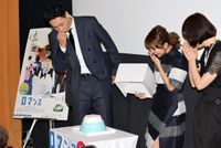 そして、舞台挨拶の最後には、サプライズとしてスタッフお手製の富士山をイメージしたケーキが登場!それを見た大島は「この、ちょっと雑といいますか、手作り感満載なところが、実に『ロマンス』らしくていいですね!」と絶賛し、イベントを締めくくった。【取材・文/ソムタム田井】