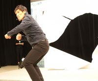 克服したいことを叫びながら突き破ることを要求されたが、篠原は「俺は亭主関白だ!」と絶叫。「家に帰ると、嫁さんのいうことを聞いている」と家庭内での意外な素顔を告白しつつ、「この場面は嫁さんには見て欲しくない。何、調子に乗っているんだと言われる」と不安げな表情を見せるなど、サービス満点のトークで会場を盛り上げていた。