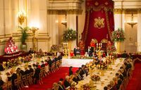 宮殿のボールルーム(舞踏場)のテーブルについた170名の招待客たちの目は、エリザベス女王と共に習近平国家主席を挟んでトップテーブルに座ったキャサリン妃の美しい姿に注がれていたそうで、英紙デイリー・メールによれば、キャサリン妃が座っていた主賓から見て右隣の席は、二番目に高位の王室の女性が座る席だという。