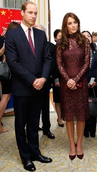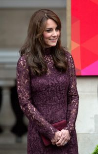 ファストファッションの女王と呼ばれるキャサリン妃は、この日は手頃な値段のハイストリートショップではなく、ドルチェ&ガッバーナの1850ポンド(約34万2千円)のプラム色のレースのワンピースを着て登場。同系色のヒールとクラッチバッグでシックにまとめ、タイトなデザインのワンピースでスレンダーな体の線を強調していた。