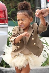 この日ノース・ウエストが着ていたバルマンのジャケットは彼女のために特注で作られたものだそうで、大人用の同じデザインのものは2500ドル(約30万円)から8000ドル(約97万円)するらしい。同ブランドのデザイナー、オリヴィエ・ ルスタンはキム・カーダシアンとカニエ・ウエストの友人であり、キムとカニエは同ブランドの広告キャンペーンにも一役買っている。