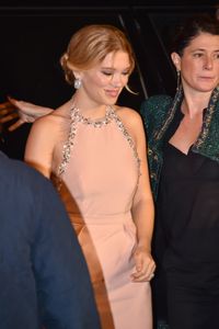 衝撃作『アデル、ブルーは熱い色』(13)でレズビアン役を演じ、見事な肢体を披露して以来、ひっぱりだこのレア。スレンダーなボディにはそぐわない豊乳とアンニュイな雰囲気なんとも色っぽいレアが今回選んだのは、ホルターネックの淡いピンクのドレスだ。