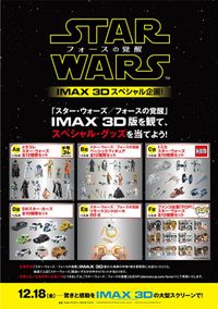 『スター・ウォーズ/フォースの覚醒』IMAX3D版をキャンペーン参加劇場で観賞し半券1枚を事務局に送ると、抽選で「スター・ウォーズ」賞品が70名様に当たります。