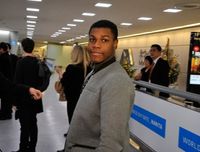 空港に到着したのは、J.J.エイブラムス監督のほか、新ヒロイン、レイ役に抜擢されたデイジー・リドリー、葛藤する脱走兵フィン役のジョン・ボイエガ、赤い十字のライトセーバーを操る、ダース・ベイダーを受け継ぐ存在カイロ・レン役のアダム・ドライバーの主要キャスト3名。到着口には、キャラクターのコスチューム姿をしたり、前日から夜通し待機していたりしたという熱烈なファン約300人が詰めかけが詰めかけ、空港は歓声に包まれた。
