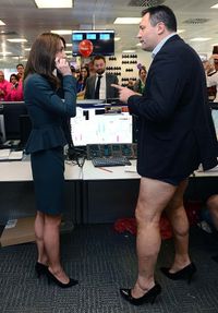 同イベントでは、ICAP社が得た利益とコミッションをチャリティに寄付するもので、おふざけでスーツジャケットにデニムのパンツ、ひげもじゃの素足にハイヒールを履いた巨漢のトレイダーの横で、キャサリン妃は電話でクライアントと交渉に決着をつける役割を担ったが、デイリー・メール紙には、大きく口を開け、顔をくしゃくしゃにして大笑いをしているキャサリン妃の写真が多数掲載されている。