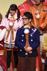 また、そんな劣勢(!?)の山ちゃんの応援すべく、南海キャンディーズの相方・山崎静代が、サルの着ぐるみ姿で登場。特別応援隊長という任を受けながらも「こんなイケメンだらけの合コンに呼んでいただいて…」と満面の笑みを見せ、山ちゃんとのさすがのボケツッコミを披露していた。