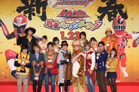 39代目のスーパー戦隊、手裏剣戦隊ニンニンジャーからは、西川俊介、松本岳、中村嘉惟人、矢野優花、山谷花純、多和田秀弥。38代目の烈車戦隊トッキュウジャーからは、志尊淳、平牧仁、小島梨里杏、横浜流星、森高愛、長濱慎と、各6名ずつが出席。お正月らしい金屏風セットを背に、それぞれ見どころや注目して欲しいシーンなどを語った。