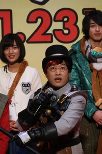 さらに、劇場版にマッドサイエンティスト・闇博士マーブロ役で出演している南海キャンディーズ・山里亮太も特別ゲストとして劇中衣装で登場。戦隊ヒーローを苦しめる悪役のオファーについて「これからは子ども達からも嫌われるのか…、2016年覚悟を決めなくては!と(笑)。それくらい強くて、みんなを苦しめる役です」とコメント。悪役キャラだけに時々毒を吐きながらも、ヒーローへのファンからの大声援にもめげることなく、場内を盛り上げるジョークを連発。会場内の爆笑を誘っていた。