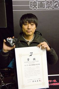 本作は、34歳にしていまだに高校生をやっているノブオと、クラスメートの17歳の女子高生リカコが繰り広げる青春物語。昨日発表されたコンペの審査員特別賞に続いての受賞となった。