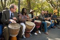 そんな彼の“心の扉”をたたいたのは、ニューヨークで出会ったシリア出身の青年タレク。そして彼が奏でるジャンベという楽器だ。ジャンベは、西アフリカなどで演奏されている片面太鼓で、その自由で開放的なリズムにウォルターはひかれていく。国籍や年齢、職業もまったく違う2人が、ジャンベを通してきずなを結んでいくさまがすばらしい。