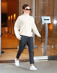 ヴィクトリアのファッションの変化は足元だけではない。最近は、以前のようなタイトスカートやミニスカートではなく、パンツにセーター、コートといったカジュアルな装いが多い。