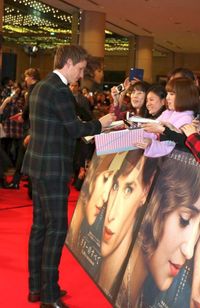 エディは2013年4月以来の来日。20倍の確率でジャパン・プレミアのレッドカーペットイベントに当選したという来場者たちに対し、「ワオ!」と驚いて見せ、「こんな経験は初めてです」と喜んだ。
