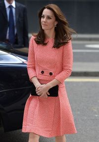 キャサリン妃が鮮やかな朱色と白のブロックチェックのヴィンテージ風ツーピースで公務に現れ、早くも春を思わせる着こなしと久々に好評を博している。