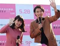 二階堂ふみ&山崎賢人が池袋に降臨!両手を重ねて映画をアピール