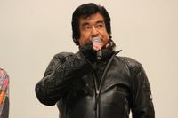金田治監督は、テレビ版「仮面ライダー」(71-73)の放映当初にスタントマンをやっていたそうで、「当時はお話もできませんでした。まさかいっしょにやれるとは」と感無量の様子だった。