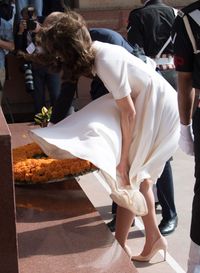 唯一褒めているのが、キャサリン妃がスラム街訪問の際に着ていた、ムンバイのデザイナー、アニタ・ドングレのカスタムメイドのピンクとグリーンのベルト付のチュニックドレスで、「このデザイナーのベストドレスとは言えないけれど、少なくともキャサリン妃が若々しくフレッシュに見えるドレス」と語っているが、相対的には、「何の個性もいいところもない」とぼろクソだ。