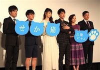 川村元気のベストセラー小説を佐藤健主演で映画化した『世界から猫が消えたなら』の初日舞台挨拶が5月14日にTOHOシネマズ六本木ヒルズで開催され、佐藤健、宮崎あおい、濱田岳、奥田瑛二、原田美枝子、永井聡監督が登壇。主人公の愛猫“キャベツ”を演じたパンプ君も登場し、会場を沸かせた。