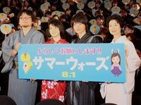 『時をかける少女』(06)の細田守監督最新作のアニメ映画『サマーウォーズ』(8月1日公開)が完成! 7月7日に完成披露舞台挨拶が行われ、声優を務めた神木隆之介、桜庭ななみ、富司純子、細田守監督が登壇した。