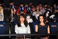 MX4Dは、映像に合わせて座席が動いたり、水や香りなど特殊効果が働き、アトラクション感覚で映画を楽しめる最新の映画鑑賞システム。山本は「すごい迫力で遊園地にいるよう。アトラクションにいるような感覚で楽しめました」と言い、とりわけ「呪いの家に入ったときに香った!」と印象的なシーンを告白。玉城も「想像以上に揺れた。(水で)顔がびしゃびしゃになっちゃって」と目を丸くし、「終わった後、放心状態になっちゃいました」と感想を明かしていた。
