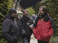 スタッフと談笑するイェーツ監督 [c]2009 Warner Bros. Ent.Harry Potter Publishing Rights [c] J.K.R.Harry Potter characters, names and related indicia are trademarks of and [c]Warner Bros. Ent. All Rights Reserved.