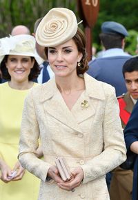 約2500人のゲストが参加した公式のガーデンパーティで、キャサリン妃は植樹を行った。この時着ていたのは、10年前にローラ・パーカー・ボウルズの挙式で、2011年にはザラ・フィリップの挙式で着ていた、クリーム地に金の刺しゅうが施されたデイ・ビルゲール・エ・ミッケルセンのコートドレスだ。