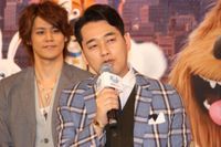 『ペット』は、飼い主が留守にしている間のペットたちの日常の裏側を描くコメディ。雑種犬マックス役の設楽は、のろまな犬・デューク役の日村と絶妙な掛け合いを見せている。設楽が「別々に撮っているけど、普段から一緒にいるので、こんな感じで来るのかなというのがわかった」と言うと、日村も「もう23~24年一緒にやってますからね」とうなずいた。