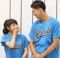 “青空”色のユニフォームに身を包んだ2人が登場すると、会場からも大歓声。竹内は「頑張ろうね」と声をかけ、土屋は「届けるね」とキリリと表情を引き締めた。土屋は背筋をピンと伸ばし、力いっぱいに投球。投げたボールはワンバウンドで竹内のミットに収まった。
