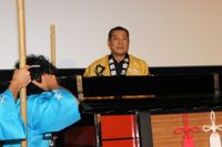 その後、アポカリプスが地球滅亡を目論むというストーリーにちなみ、地球を模したくす玉を松平が一刀両断した。