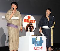 ステージに巨大スイカのオブジェが用意され、スイカ割りに挑戦することとなったこの日。会場の「せーの!」の掛け声とともに、設楽、日村、佐藤がスイカを割ると、「続編決定」のプレートがお目見えした。まったくこのニュースを知らなかった3人は、プレートを見て「おー!続編決定!?」と驚愕。