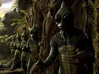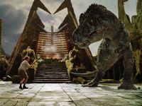 この作品の見どころは、何と言っても、出てくるクリーチャーのほとんどが着ぐるみだというところ。マーシャル博士と行動を共にする類人猿のチャカや、ゾンビのように群れを成して襲い掛かってくるトカゲ族・スリースタックなど、CG主流のご時勢に逆行するかのように、着ぐるみキャラクターが大量に登場するのだ。