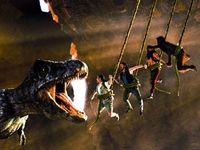 もちろん、CGで描かれた巨大なT・レックスも登場し、スクリーン狭しと大暴れするので、着ぐるみだけじゃ物足りないという映画ファンもご安心を。【トライワークス】