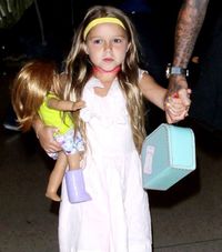 ベッカム娘、パパと骨折した人形を抱えてイギリスへ!