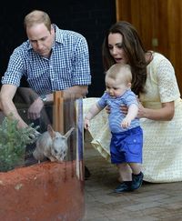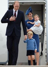 シャーロット王女はキャサリン妃に抱かれ、ジョージ王子はチェックのシャツに青いセーター、黒い半ズボンにハイソックス姿でウィリアム王子と手をつないで機内から現れると、伊勢志摩サミットの際、日本でもイケメンと話題になったカナダ首相ジャスティン・トルドーとソフィー・グレゴワ=トルドー首相夫人らから大歓迎を受けた。
