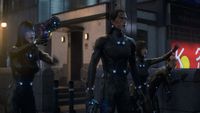 「GANTZ」の代名詞ともいえるこのボディスーツ。身体能力を最大限に発揮するため、体にぴったりとフィットする仕様になっており、生前グラビアアイドルだったレイカの抜群なスタイルがあらわになる。今回はフル3DCGを用いて、レイカ自慢の巨乳を見事に表現しており、露出のないコスチュームながら、何ともエロく、想像を掻き立てられるルックスに。