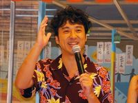 本作はクリスマス・イヴに海の家へ集まった7人の男たちが、憧れのマドンナの愛を巡り、妄想を繰り広げる物語だ。山田、マドンナ役の戸田をはじめ、山本裕典、ムロツヨシ、小柳友、白石隼也、安田顕、佐藤二朗が劇中の衣装で登場。テレビの「33分探偵」や「堂本剛の正直しんどい」で知られる人気脚本家にして構成作家、福田雄一監督も、出演者に合わせてアロハで現れた。